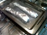 Se limpia bien el rape, quitando toda la piel finita para que no se quede correoso, se lava y se coloca sobre un papel de aluminio donde se espolvorea con el pimentón de forma que quede distribuido de forma homogénea, se sala y con la hoja de laurel se envuelve con el papel de aluminio de forma que quede prieto.